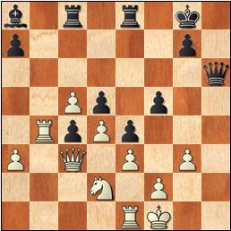 1.e4 d5 2.exd5 Dxd5 3.Cc3 Da5 4.g3!? c6 5.Ag2 Af5 6.d3 e6 7.Cge2 Cf6 8.Ad2 Cbd7 9.0-0 Ae7? Cede la pareja de alfiles. [9...Ad6] 10.Cd5 Dd8 11.Cxe7 Dxe7 12.Ac3 0-0 13.Dd2 Tfe8 14.Tfe1 Cd5 15.Cf4? El problema es que el caballo puede ser desalojado fácilmente de esta casilla. [15.Cd4] 15...Cxc3 16.Dxc3 Cf6?! [16...e5= Echa al corcel y pone peones en casillas de distinto color que su alfil.] 17.h4 Las negras amenazan ...e5 no ...g5. 17...Dd7 [17...e5!] 18.Te2 Cd5 19.Cxd5 [19.Dd4] 19...exd5 20.Tae1 Txe2 21.Txe2 Te8 22.De1 La columna e no importa. [22.Txe8+ Dxe8 23.Da5+/=] 22...Txe2 23.Dxe2 Rf8 24.f3? En general, no conviene poner los peones en casillas del mismo color que su alfil, y en particular, se debilita mucho el flanco de rey. [24.De5] 24...Dd6 25.Rf2 f6 [25...Dc5+!] 26.g4 Ad7 27.d4 Correcto, pero ya es tarde. 27...f5