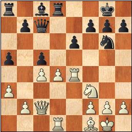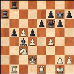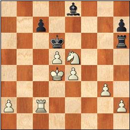 13.Dxc5 Dxf6 14.Cxh8 Dd4+! Ingenioso. El caballo de h8, atrapado, puede ser capturado por la torre. 15.Dxd4 Cxd4 16.Ca3 Ce2+ ¿Para qué cambiar un caballo centralizado por un alfil no desarrollado, que obstruye a su torre, etc., sin mencionar que se esfuman las esperanzas se salvarse por la presencia de alfiles de distinto color? Poderosas razones de cálculo lo fundamentan, seguramente. 17.Rf2 Cxc1 18.Txc1 Re7 19.Tf1 Txh8 20.Re3 Tg8 21.g3 b5 22.d4 Tg6 23.c4 bxc4 24.Cxc4 Ab5 25.b3 Tc6 26.Rd3 Th6 27.Tf2 a5 28.d5 a4 29.bxa4 Axa4 30.Rd4 Ab5 31.Ce5 Ae8 32.Tc2 Rd6 33.Cf7+! "Tengo tres peones de más, pero ¿por qué ganar prosaicamente?" 33...Axf7 34.Tc6+ Enfilada. 1-0