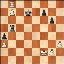 33...Tb7 34.Tb3 a4 35.Tb5 Td3 36.Tc7 Tb3!? 37.Txb7 Txb5 38.Tb8 Rf6 39.b7 Re7 40.Rf2 Rd7?? La posición con el peón en séptima, encerrando su propia torre es de tablas, pero hay que tener cuidado con no caer en una trampa, como ésta. 41.Tf8! Txb7? [41...Rc7 42.b8D+ Txb8 43.Txb8 Rxb8 este final de peones está perdido también, pero las negras, al menos, tienen la misma cantidad de peones que su rival.]