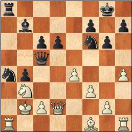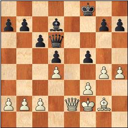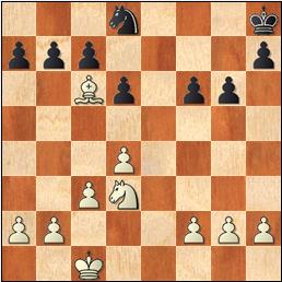 1.e4 d5 2.exd5 Dxd5 3.Cc3 Da5 4.g3!? c6 5.Ag2 Af5 6.d3 e6 7.Cge2 Cf6 8.Ad2 Cbd7 9.0-0 Ae7? Cede la pareja de alfiles. [9...Ad6] 10.Cd5 Dd8 11.Cxe7 Dxe7 12.Ac3 0-0 13.Dd2 Tfe8 14.Tfe1 Cd5 15.Cf4? El problema es que el caballo puede ser desalojado fácilmente de esta casilla. [15.Cd4] 15...Cxc3 16.Dxc3 Cf6?! [16...e5= Echa al corcel y pone peones en casillas de distinto color que su alfil.] 17.h4 Las negras amenazan ...e5 no ...g5. 17...Dd7 [17...e5!] 18.Te2 Cd5 19.Cxd5 [19.Dd4] 19...exd5 20.Tae1 Txe2 21.Txe2 Te8 22.De1 La columna e no importa. [22.Txe8+ Dxe8 23.Da5+/=] 22...Txe2 23.Dxe2 Rf8 24.f3? En general, no conviene poner los peones en casillas del mismo color que su alfil, y en particular, se debilita mucho el flanco de rey. [24.De5] 24...Dd6 25.Rf2 f6 [25...Dc5+!] 26.g4 Ad7 27.d4 Correcto, pero ya es tarde. 27...f5