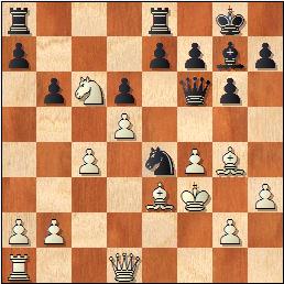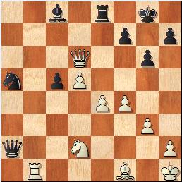Las damas están ofreciendo un espectáculo de ataque y defensa. 31.Td1? Protección efímera del corcel. [31.Dxc5! Dxd2 32.Ag2 Sin apuro, el caballo está copado.] 31...Ag4 32.Ab5 Tf8 33.Tf1 Dxd2 34.Dxc5 Ah3 35.Tg1 Cb3 36.Db6 Cd4 0-1